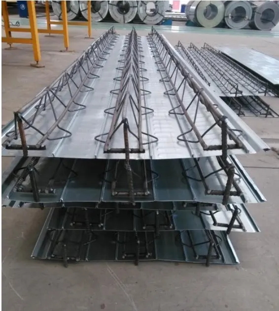 镀锌钢板厚度0.5-1.2mm,作为施工阶段的永久性模板,与钢筋桁架通过电阻焊连接。